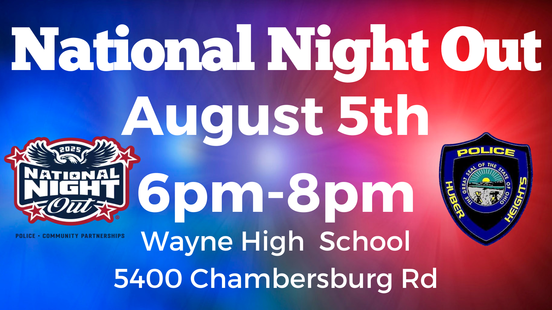 Join us for National Night Out at Wayne High School. We will have fun activities for the whole family.