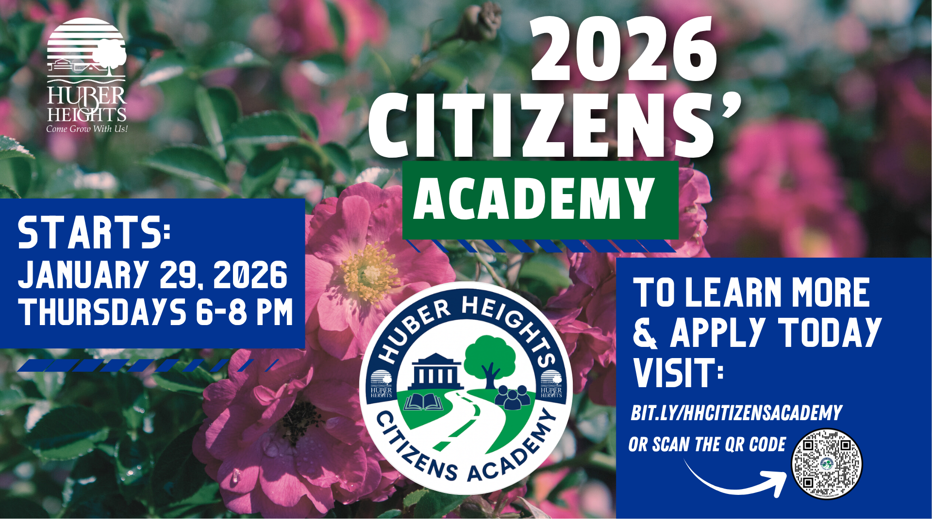 “This new program brings transparency, understanding, and connection to the people who make Huber Heights the great community it is,” said Mayor Jeff Gore. “The Citizens’ Academy will strengthen relationships between residents and city staff and showcase the work that goes into keeping our city moving forward.”