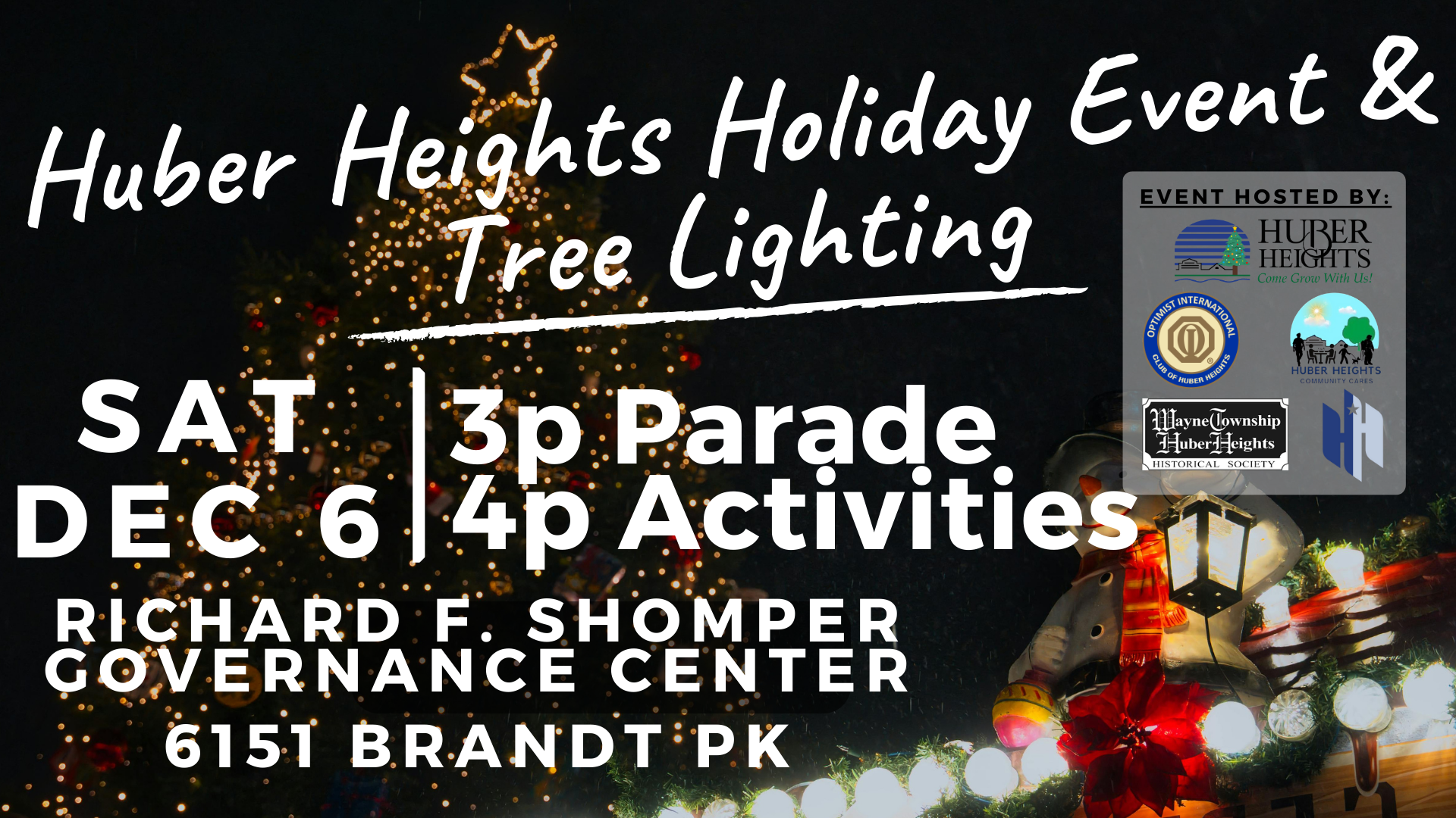 • 3:00 PM – Community Cares Holiday Parade (Huber Centre to Fishburg via Chambersburg Rd. and Brandt Pike)