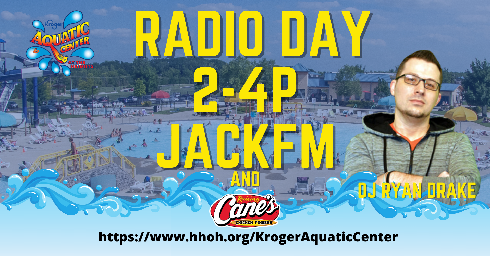 92.9 JackFM's DJ Ryan Drake broadcasts live from the Kroger Aquatic Center between 2 and 4p. PLUS, Raising Cane's will also be joining us with a raffle and giveaway items.
